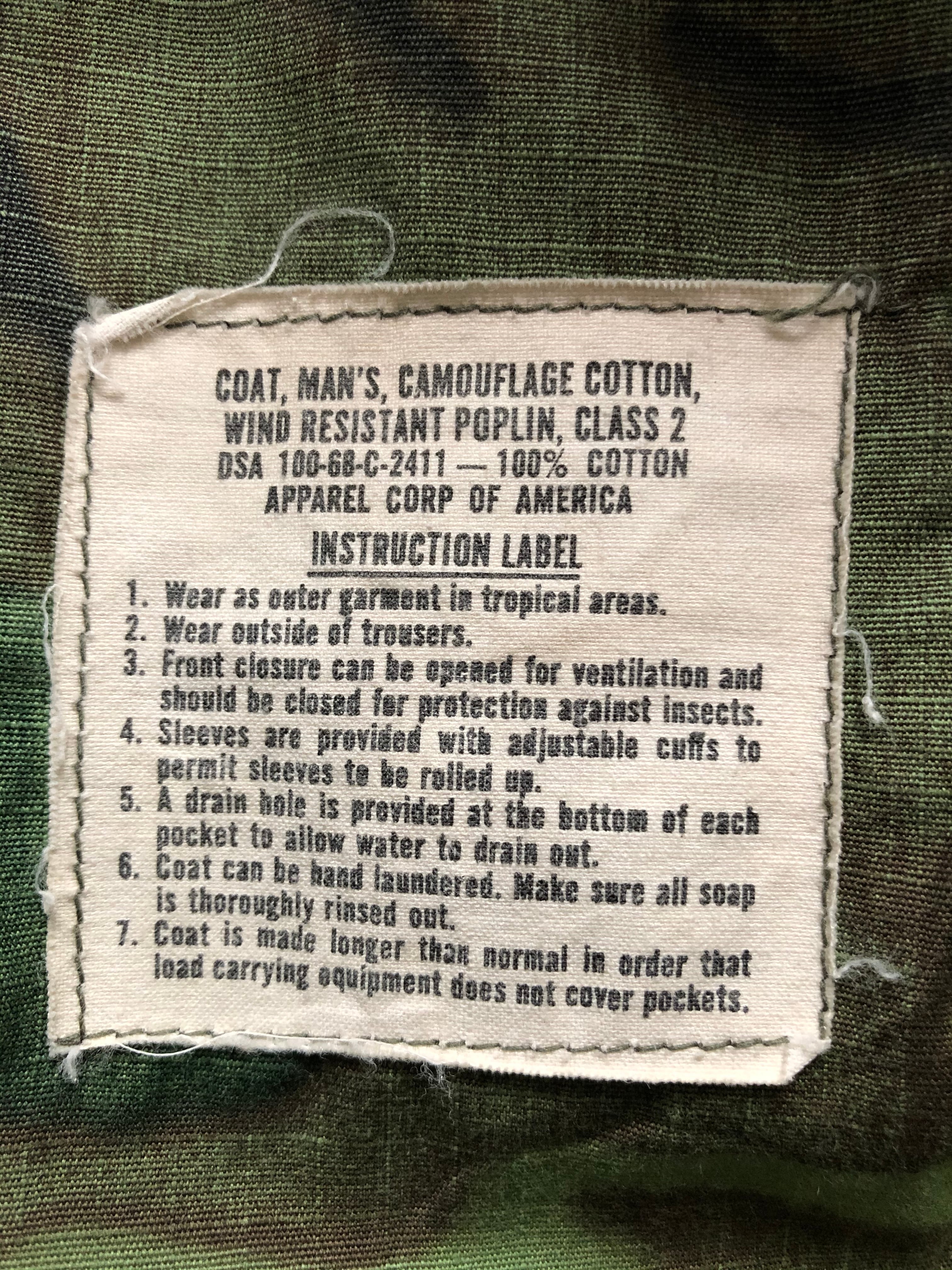 1960’s U.S.ARMY ERDL Green Leaf Camouflage Jungle Fatigue Jacket 4th
