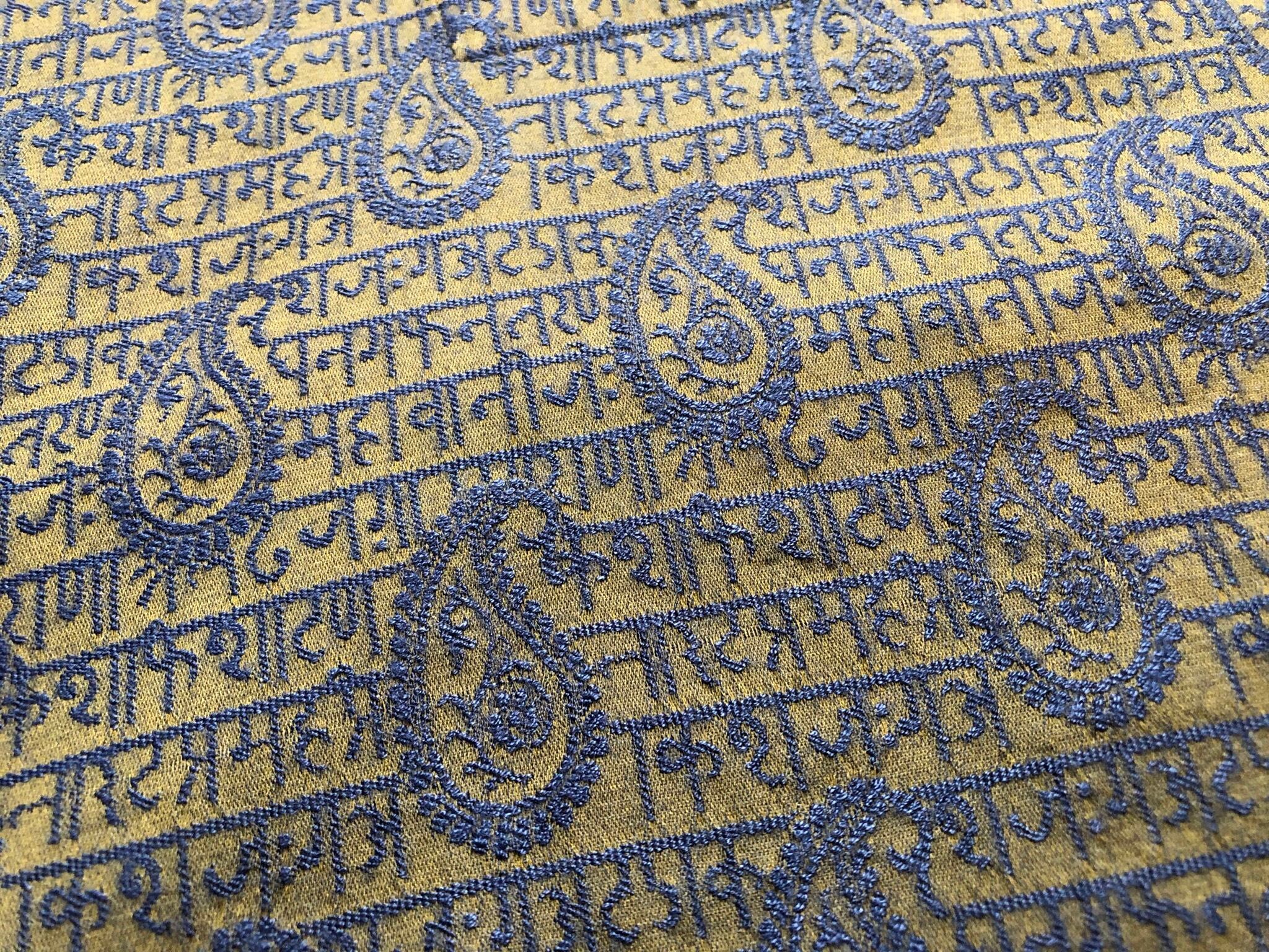 ペイズリー柄に古代インドで使われたサンスクリット文字のような柄もあり、趣のある逸品となっています。