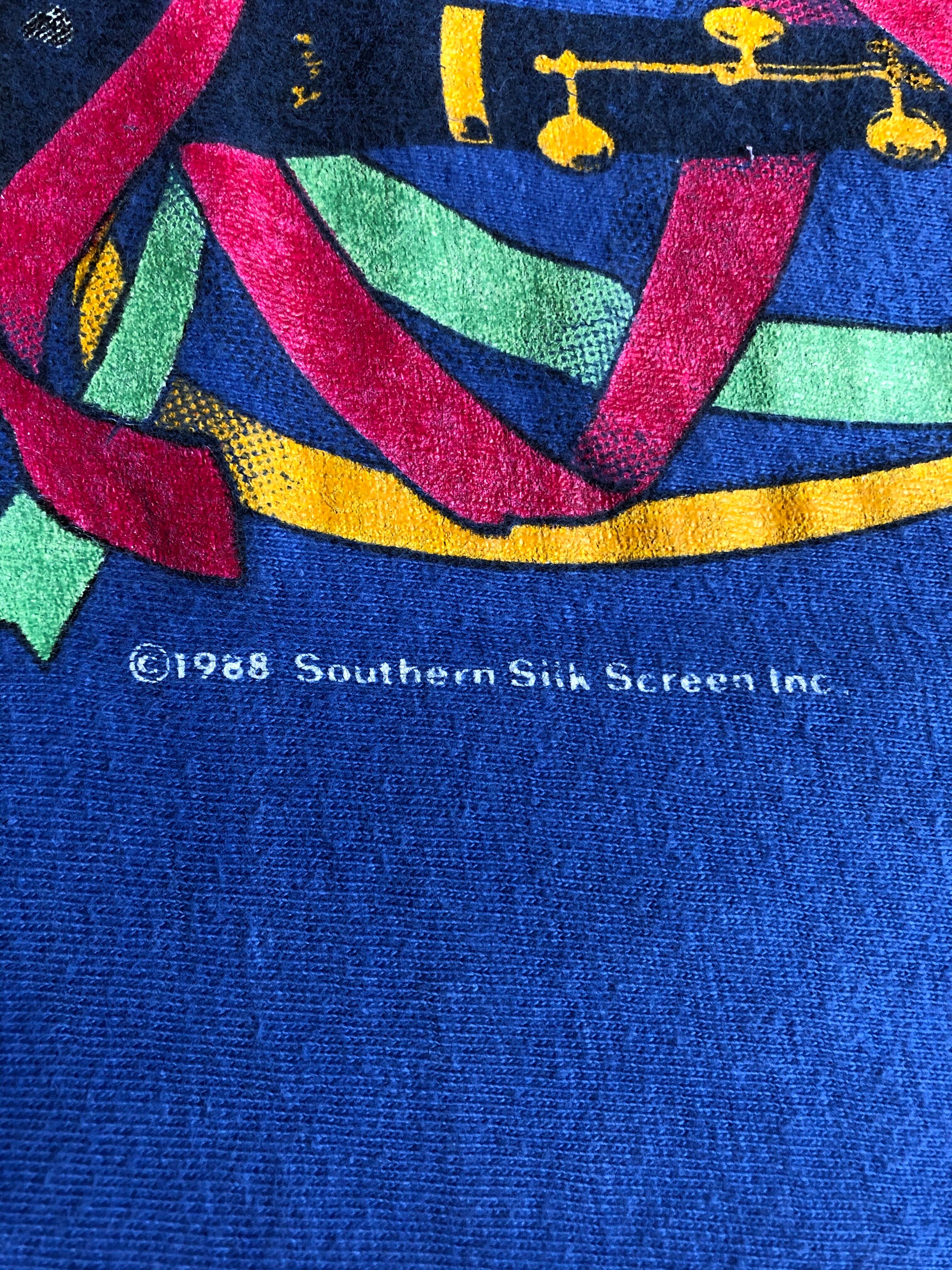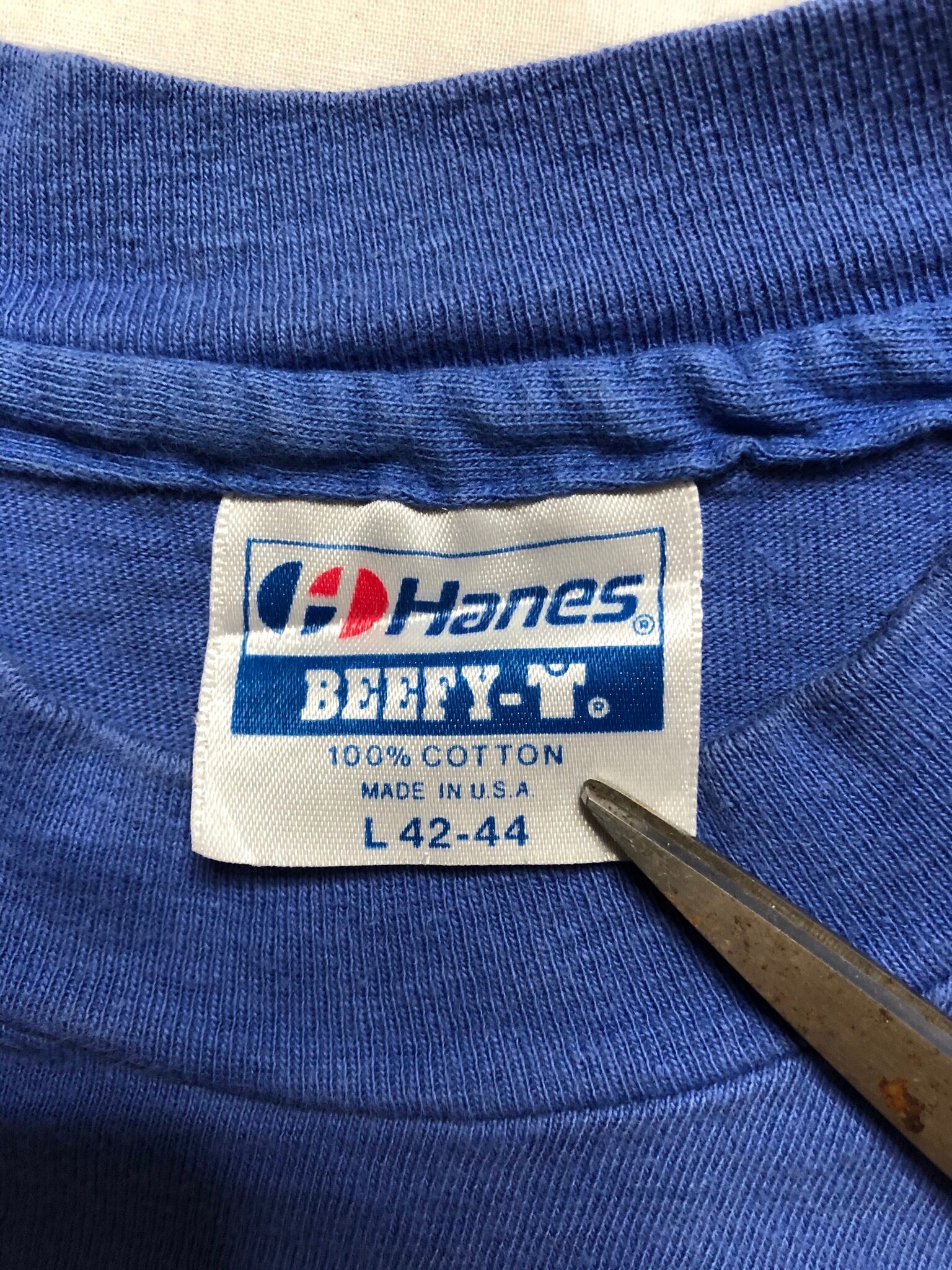 ボディはHanesのアメリカ製で袖・裾いずれもシングルステッチ、1988年のコピーライトも入ります。