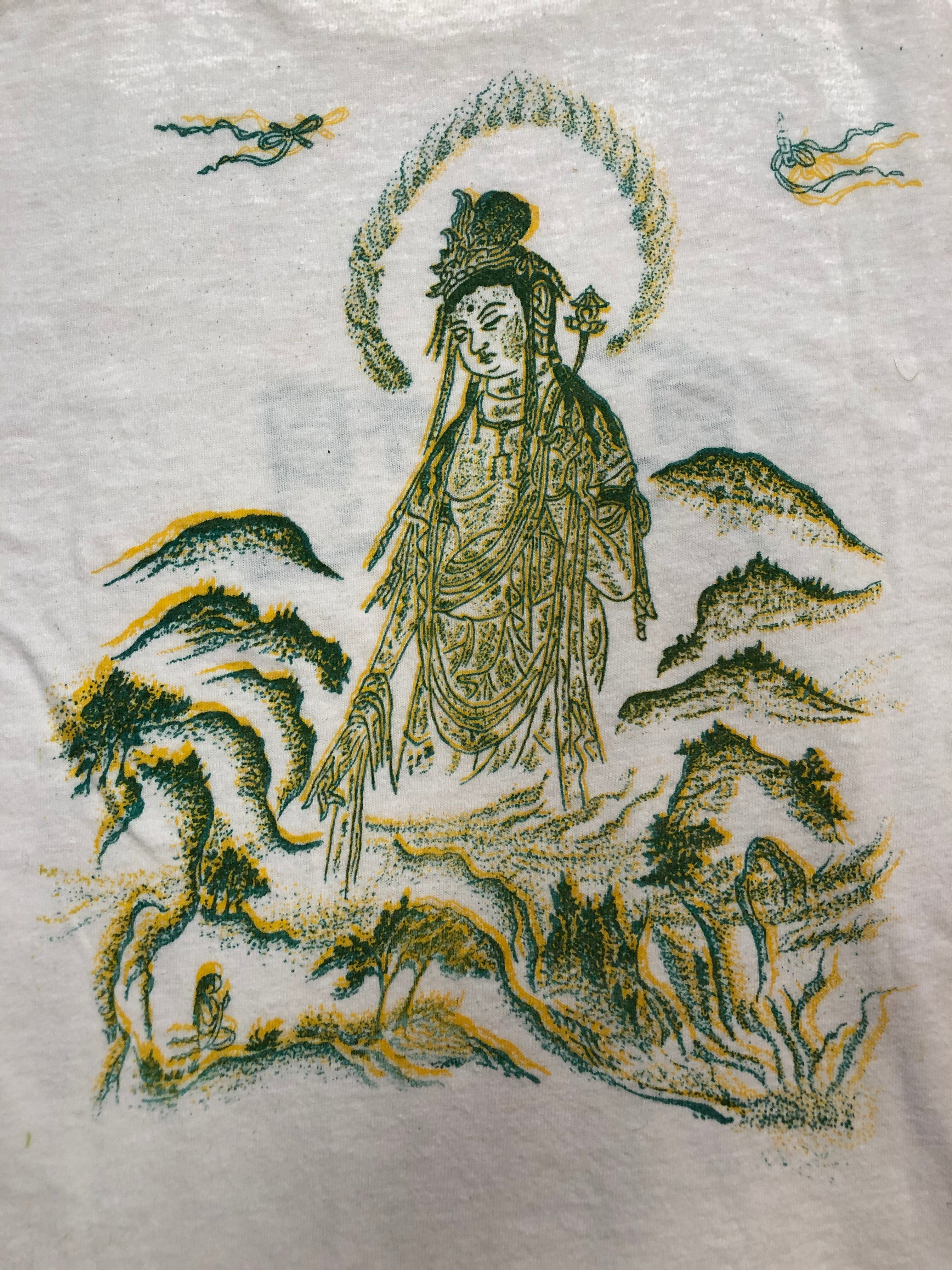 1970年代、瞑想と仏教の世界をモチーフにしたプリントTシャツです。