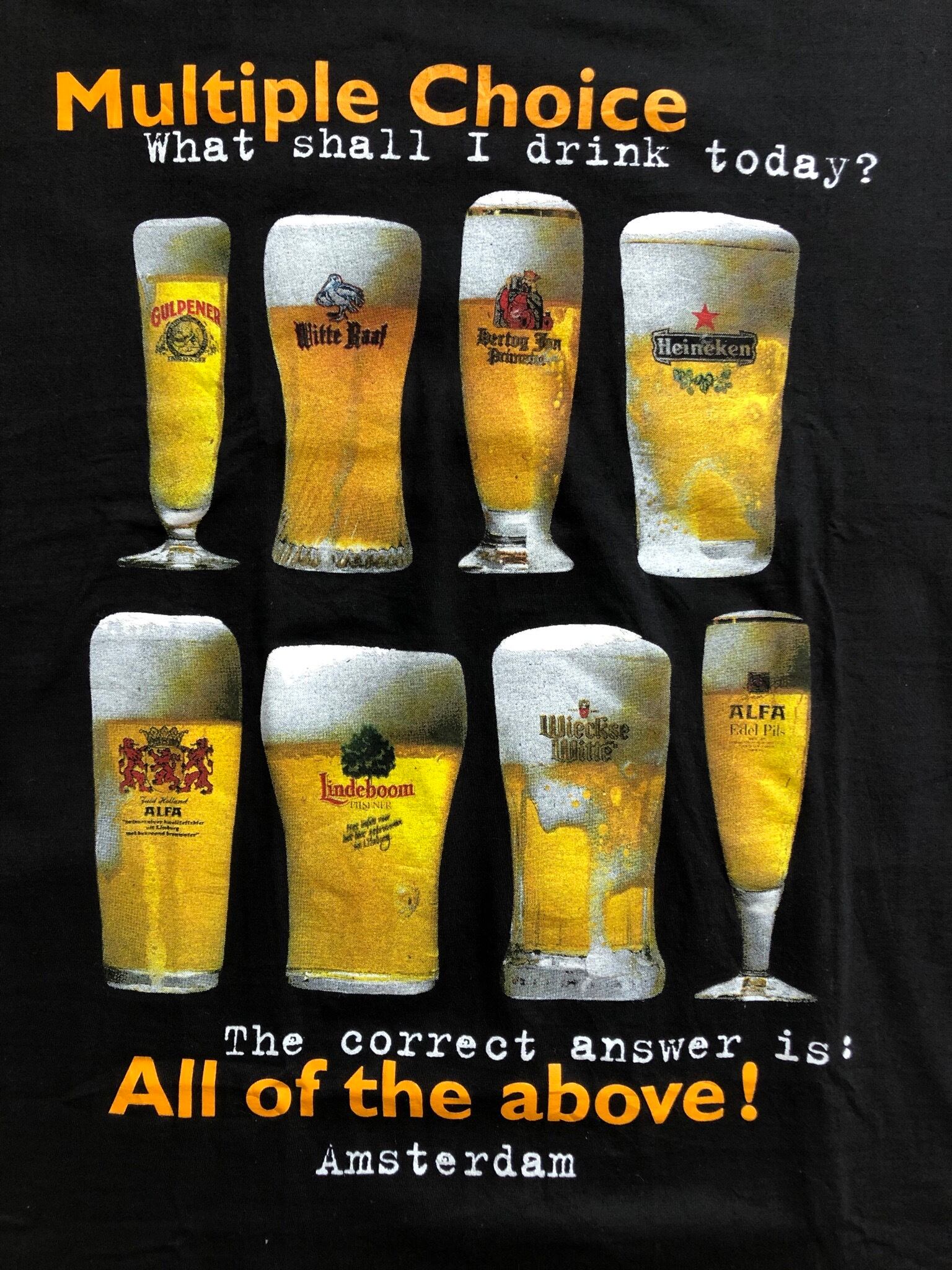 ビールがさまざまなジャッキに注がれている、夏の時期には何とも魅力的なプリントTシャツです。