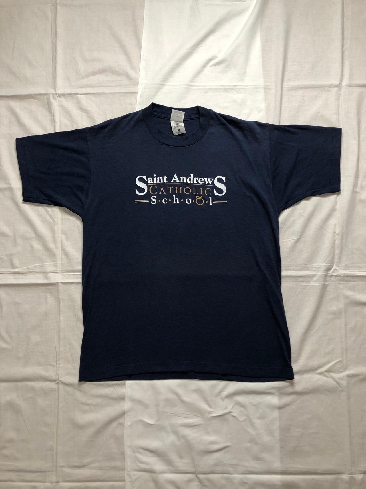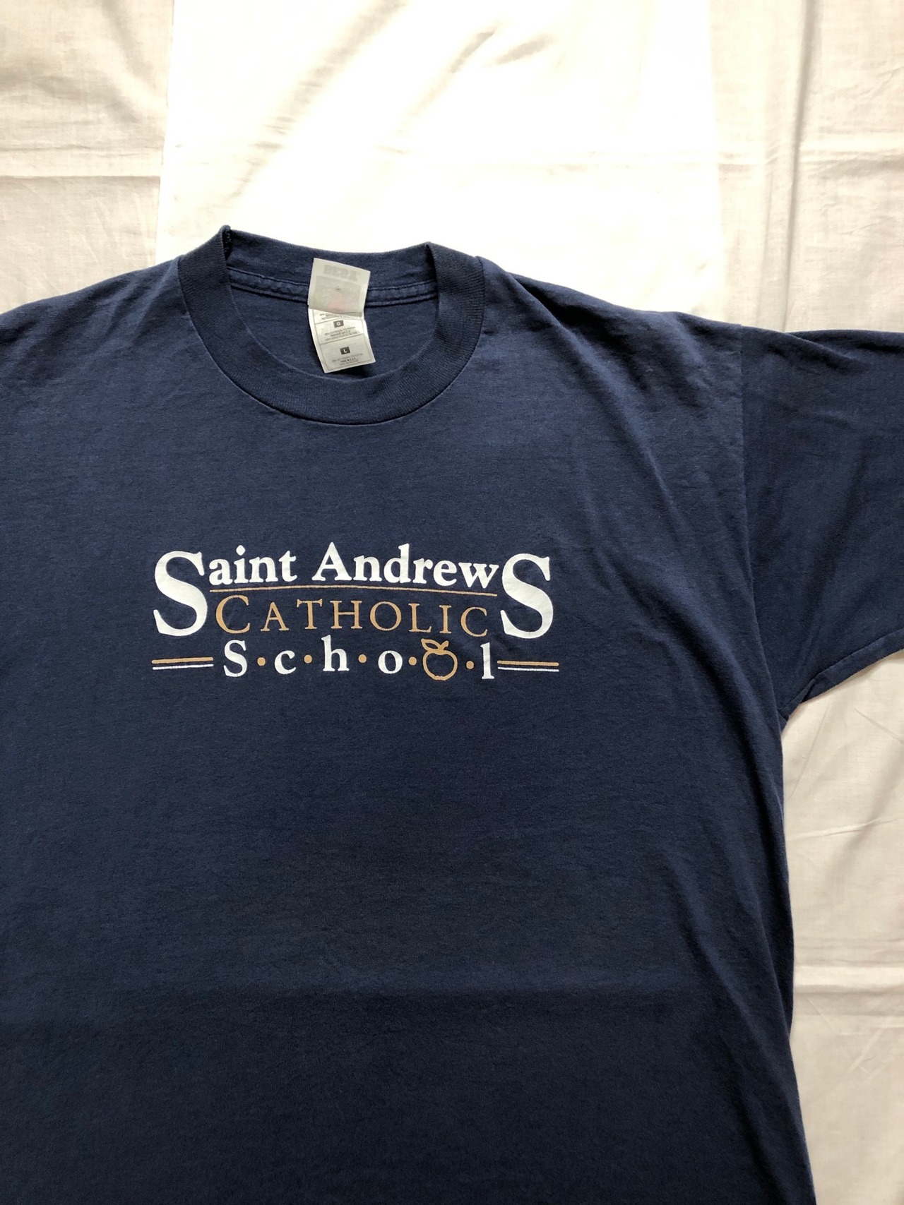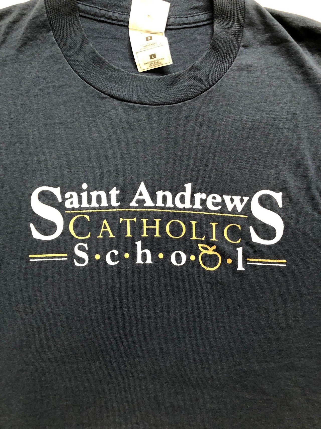 FRUIT OF THE LOOMのタグにプリントはカトリック学校のものになっています。