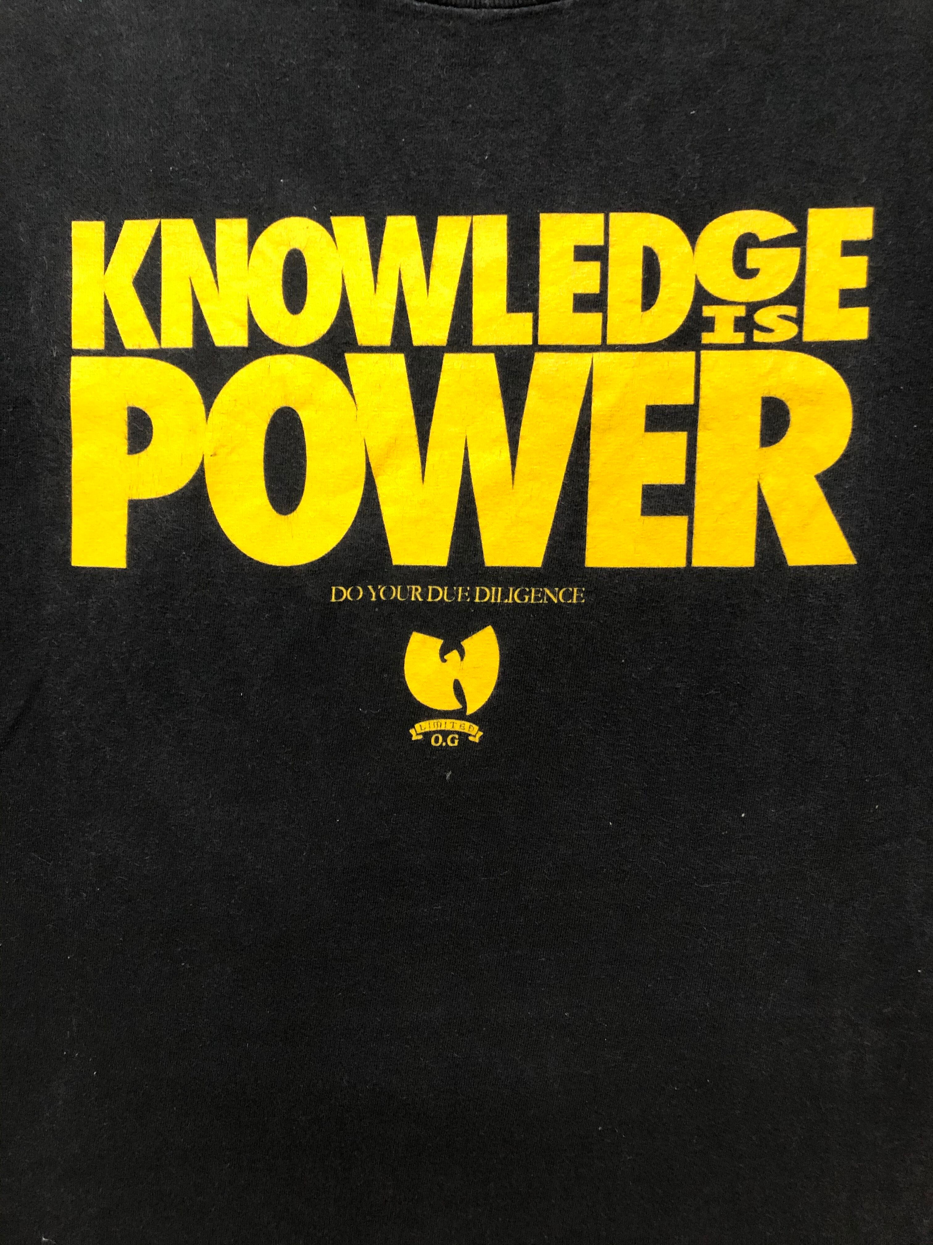前見頃のプリントには「KNOWLEDGE IS POWER」と書かれ、これはイングランドの哲学者であったフランシス・ベーコンの残した言葉です。