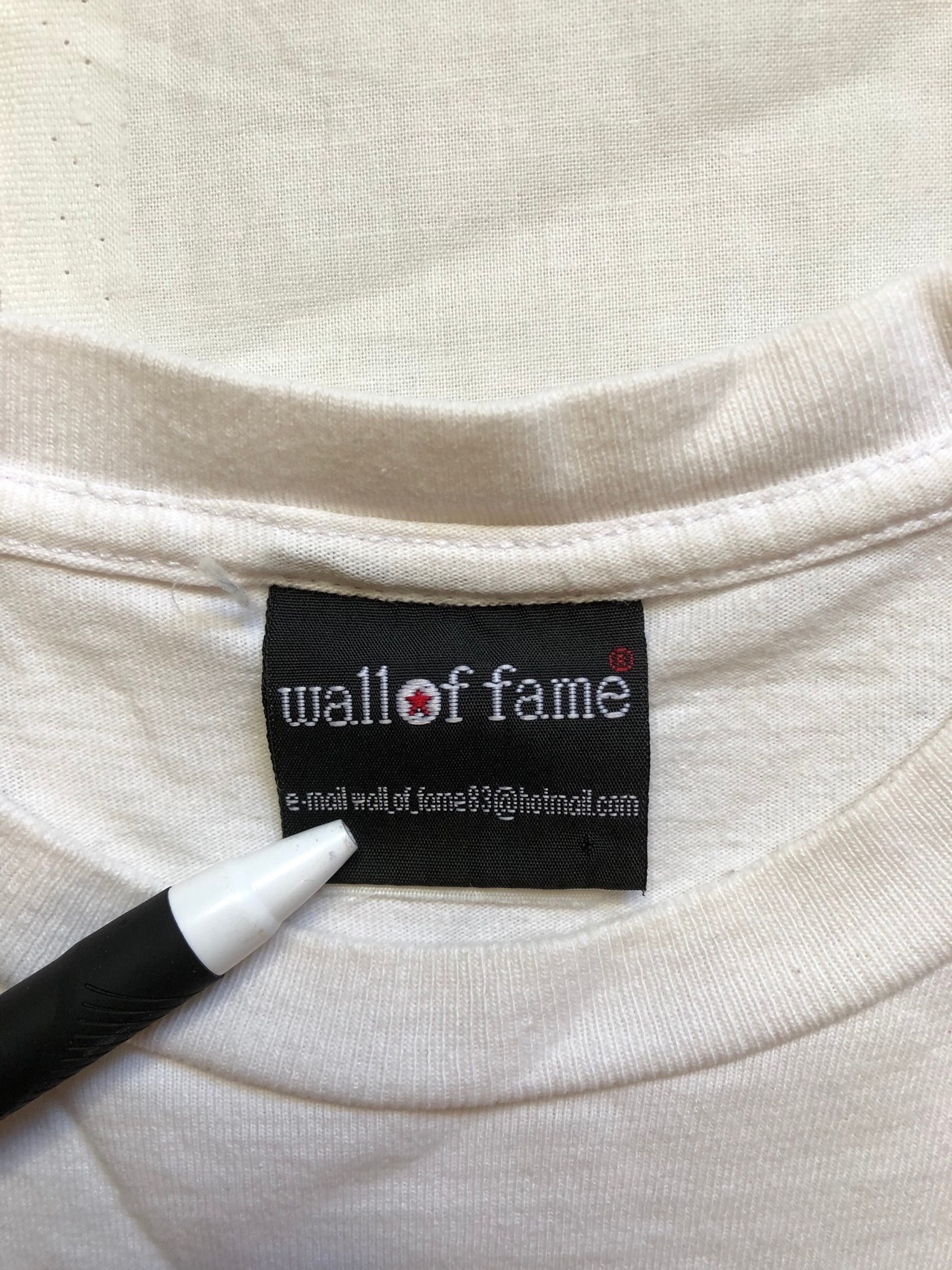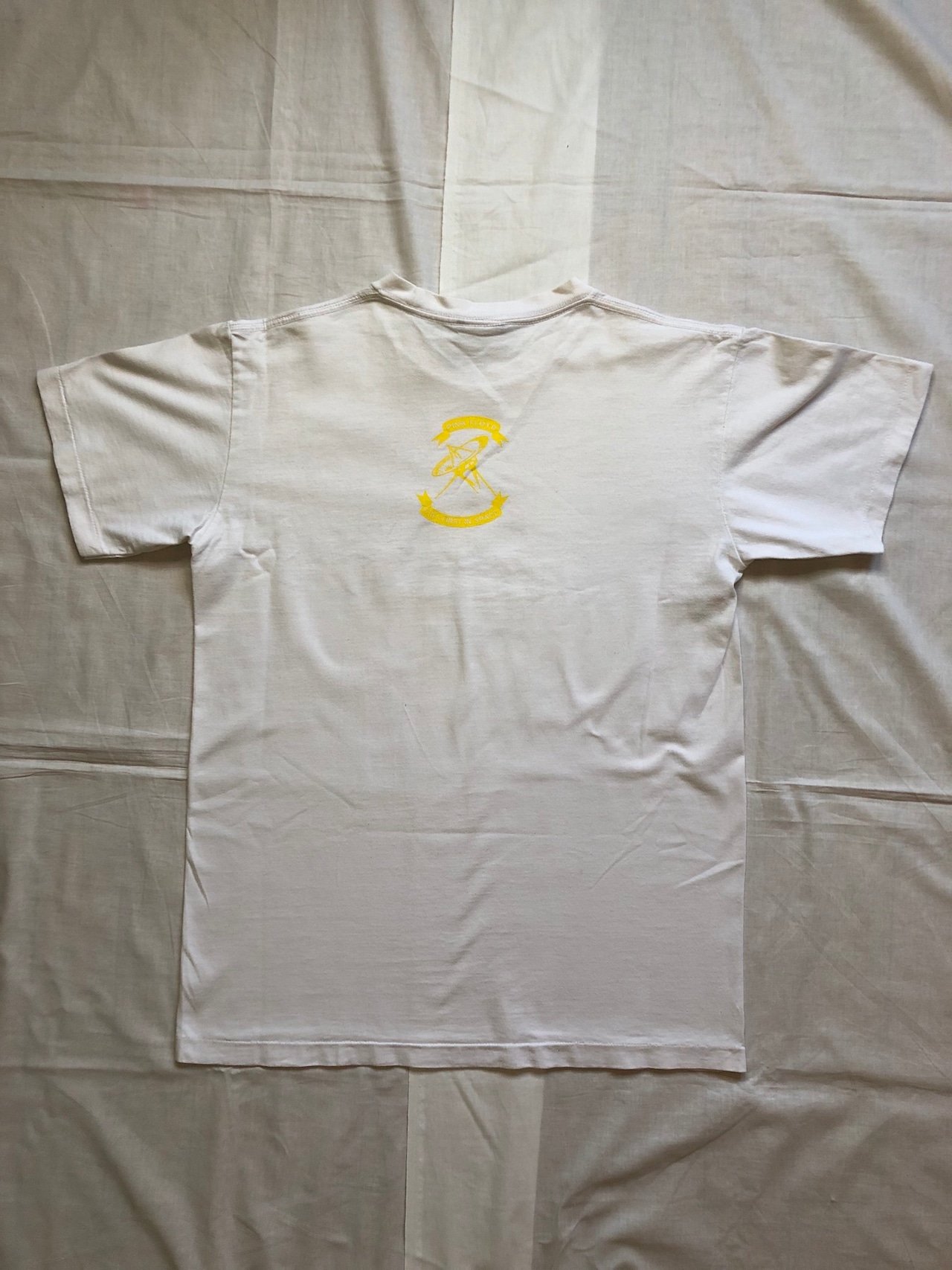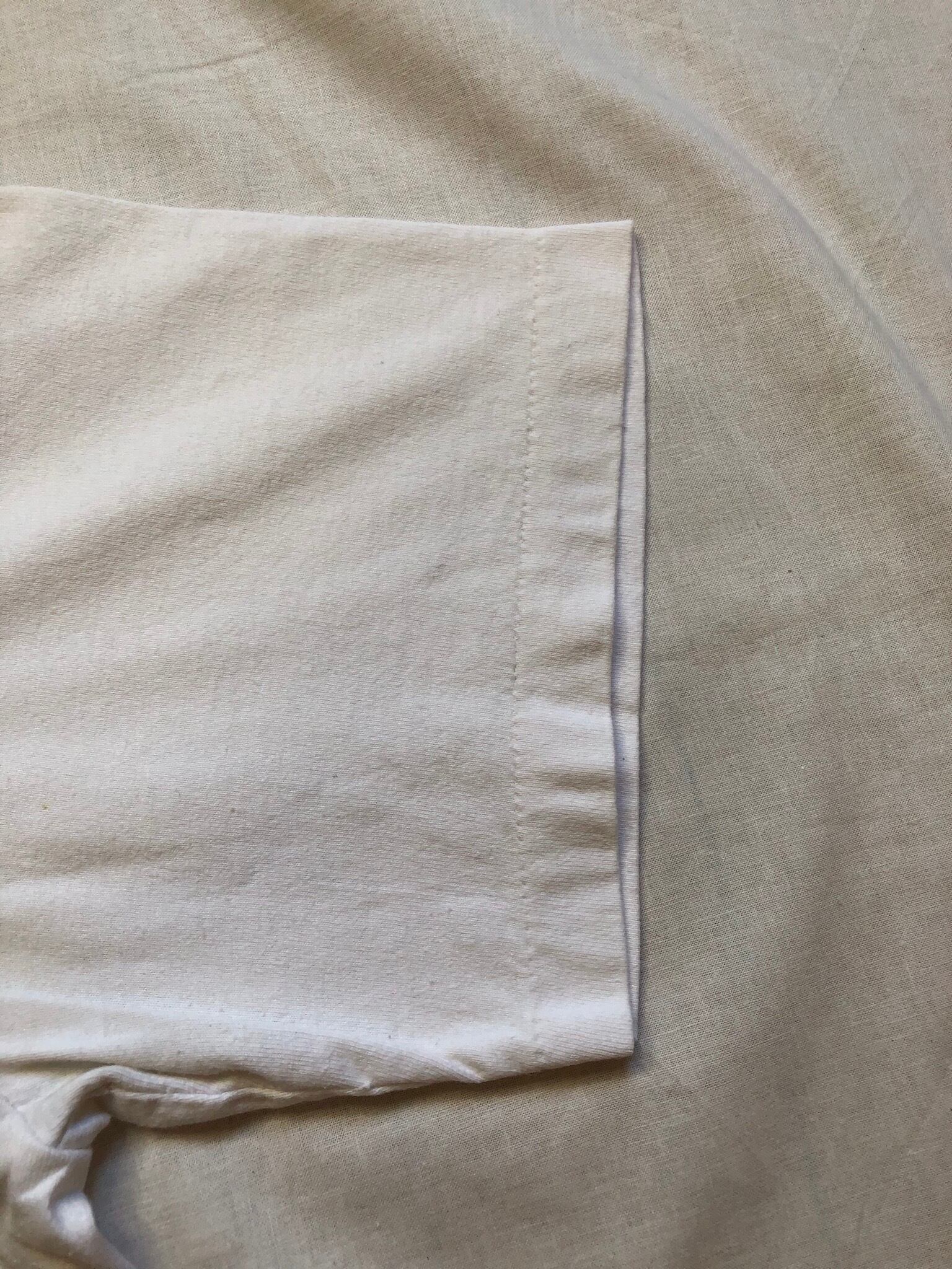袖・裾ともにシングルステッチで、前見頃のプリント右下に1996年のコピーライトが入ります。