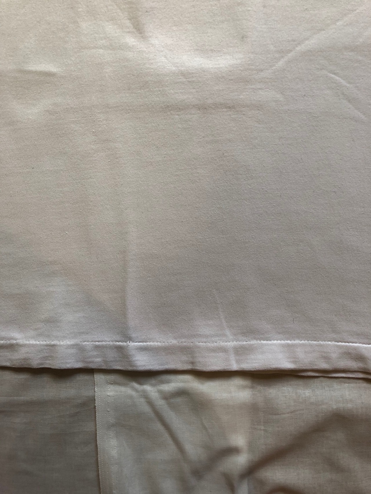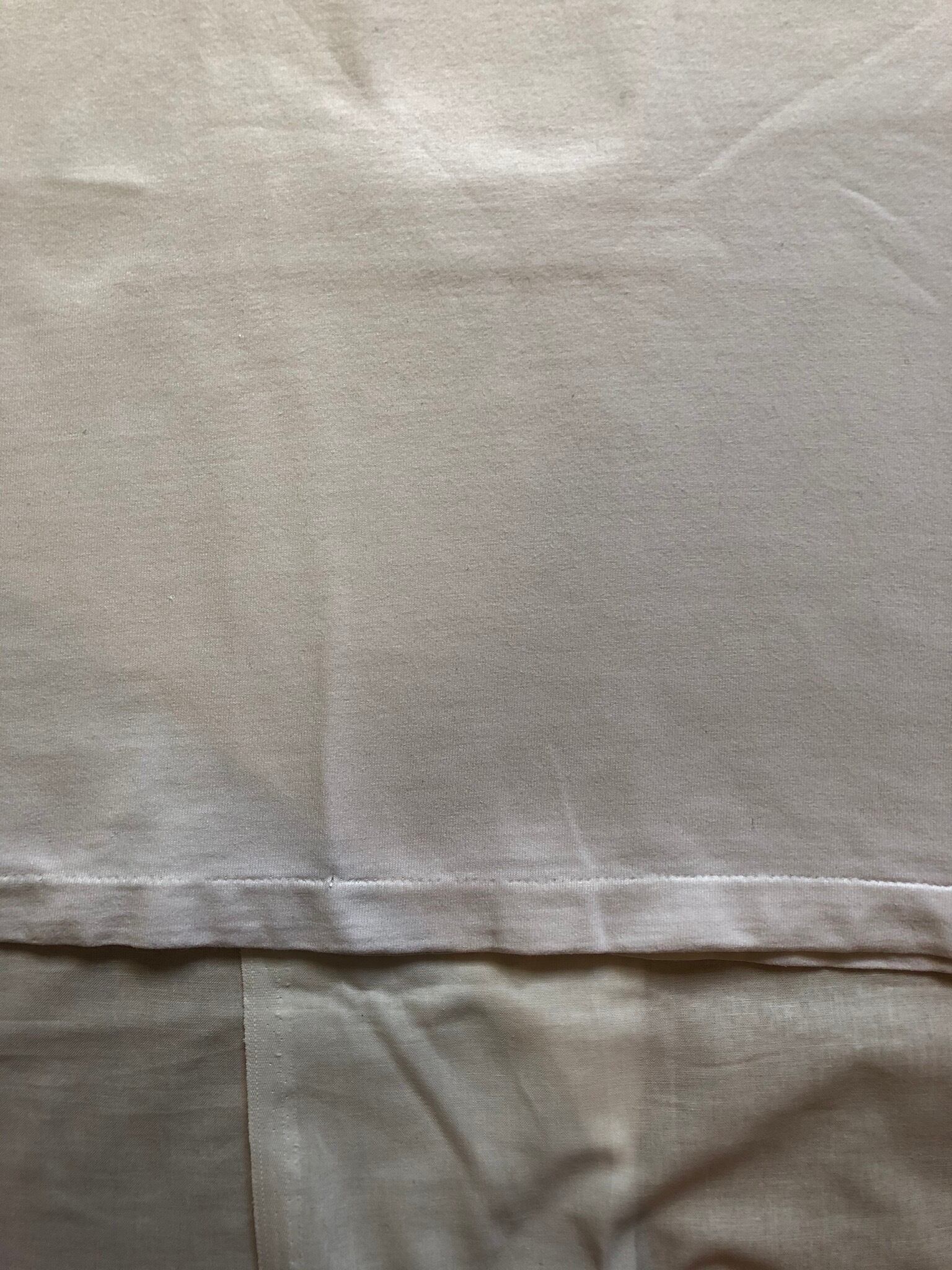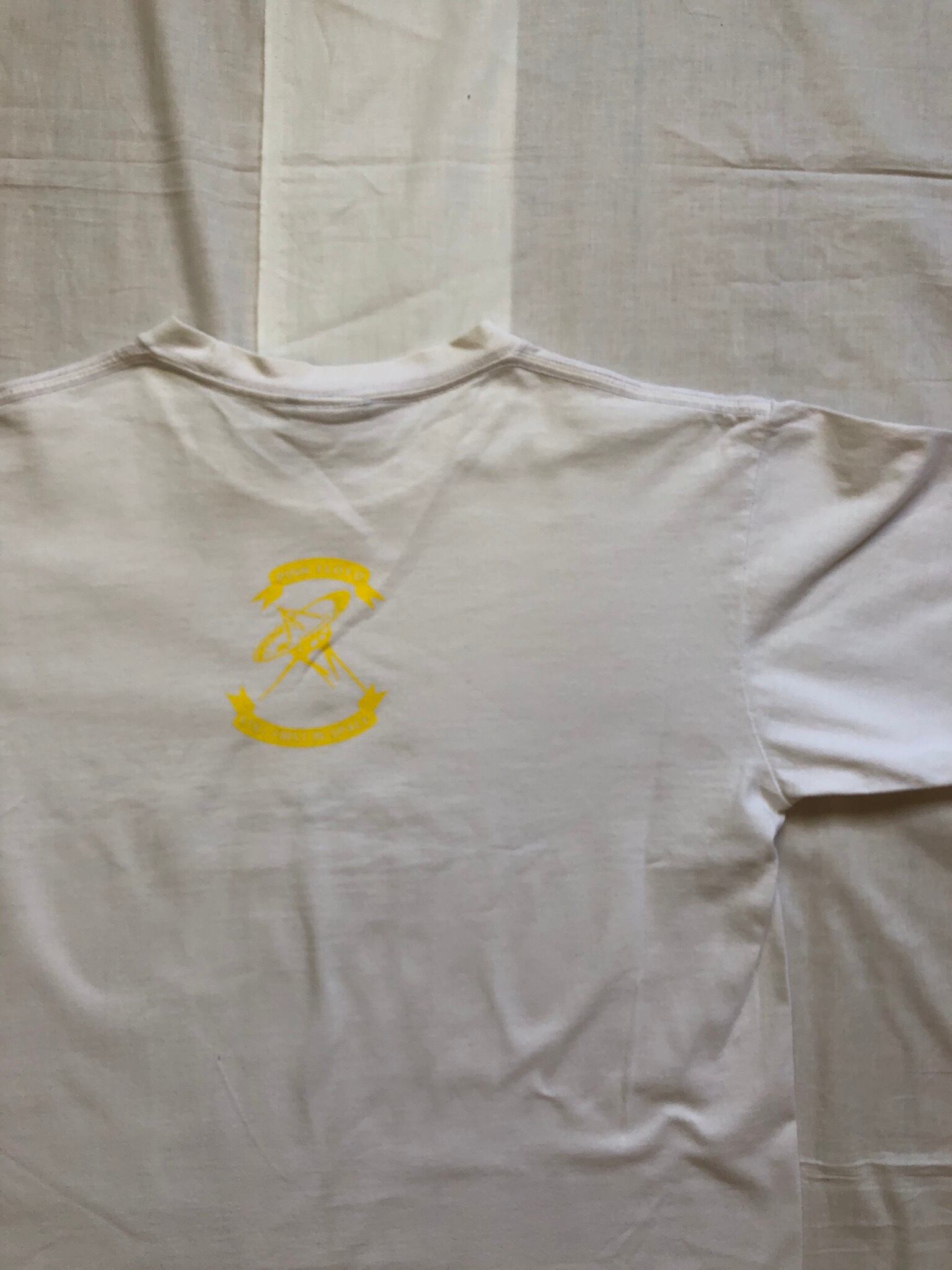 袖・裾ともにシングルステッチで、前見頃のプリント右下に1996年のコピーライトが入ります。