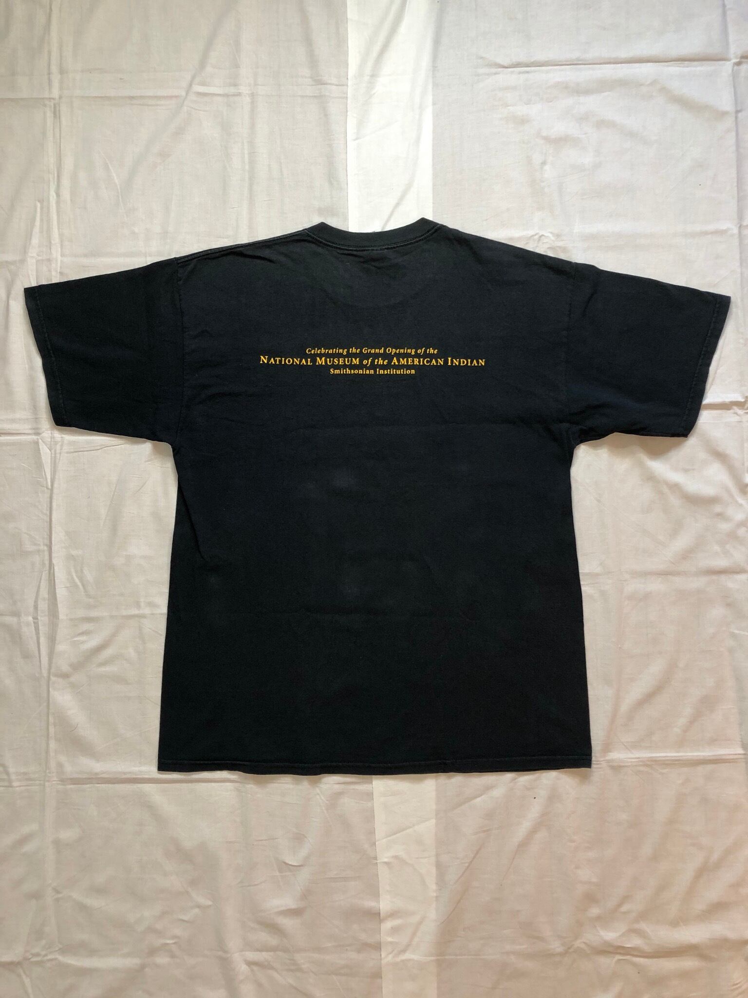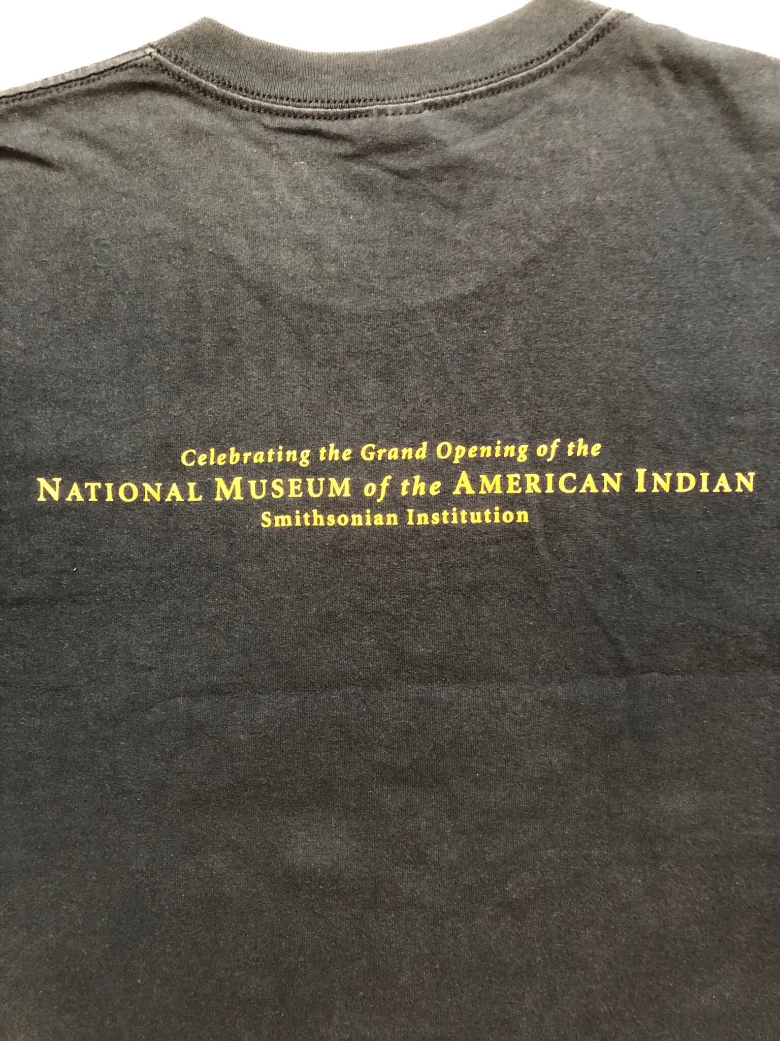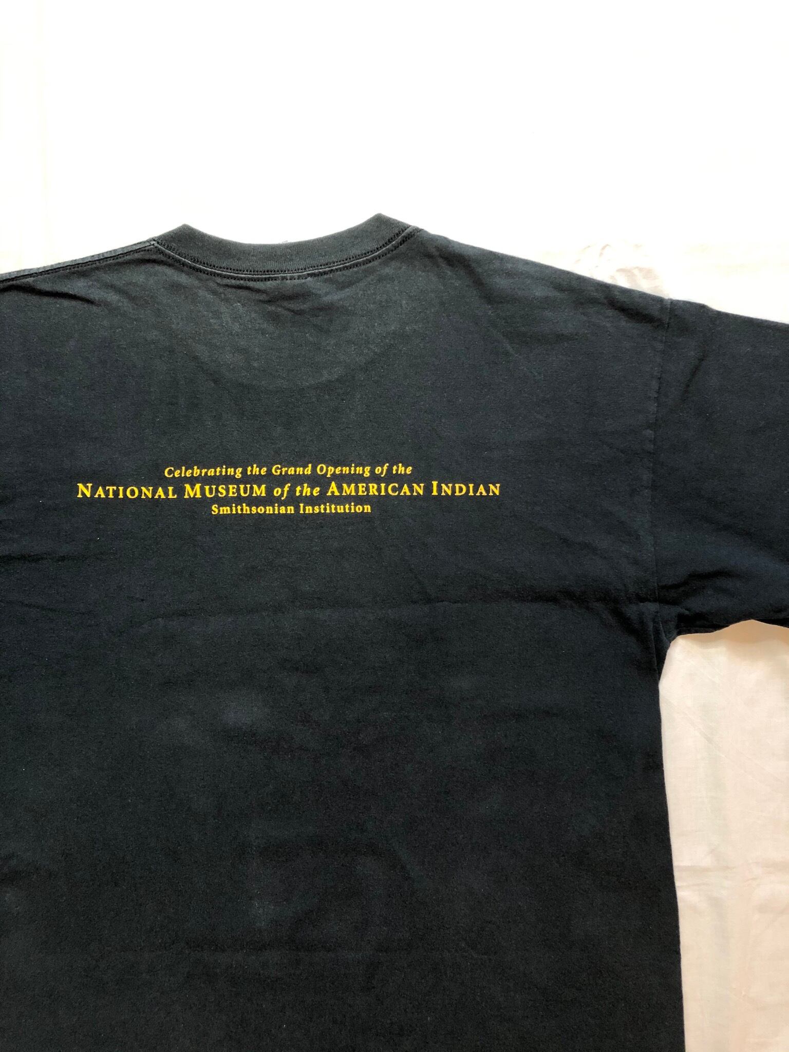 前身頃のプリントに「FIRST AMERICANS FESTIVAL」後ろ身頃に「国立アメリカ・インディアン博物館」文字がプリントされているので、この博物館でネイティブ・アメリカンに関する特別展示などを行った際の記念Tシャツと思われます。