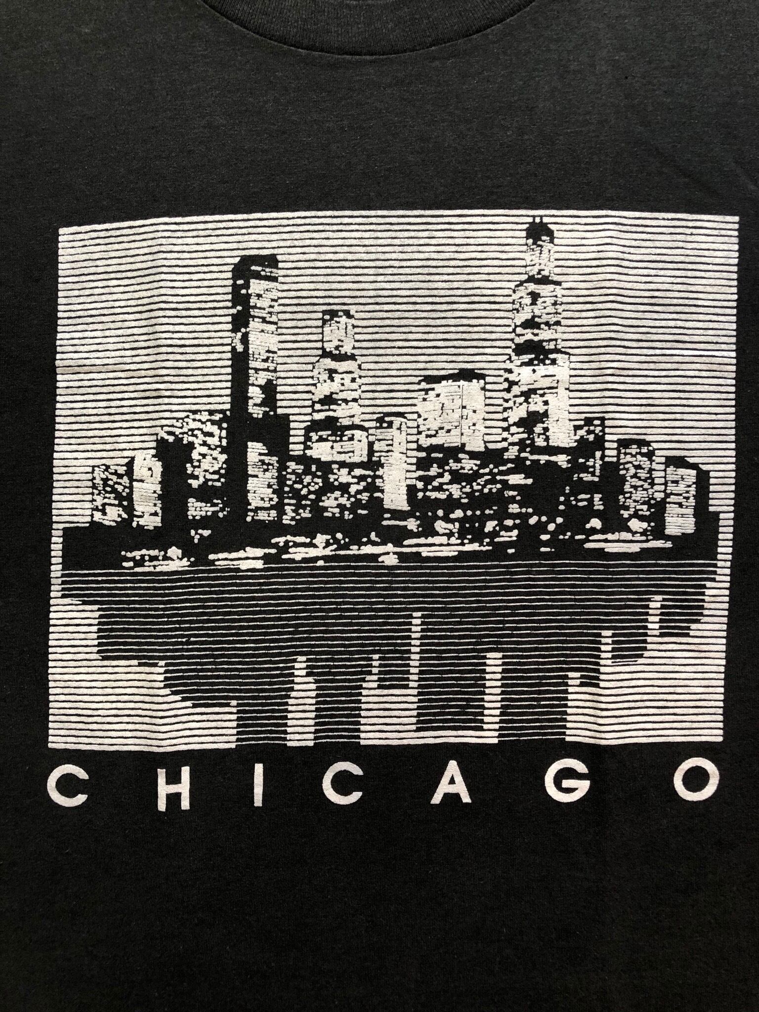 ニューヨーク、ロサンゼルスに次ぐアメリカ第三の都市で、このTシャツもシカゴの摩天楼をモチーフにしています。