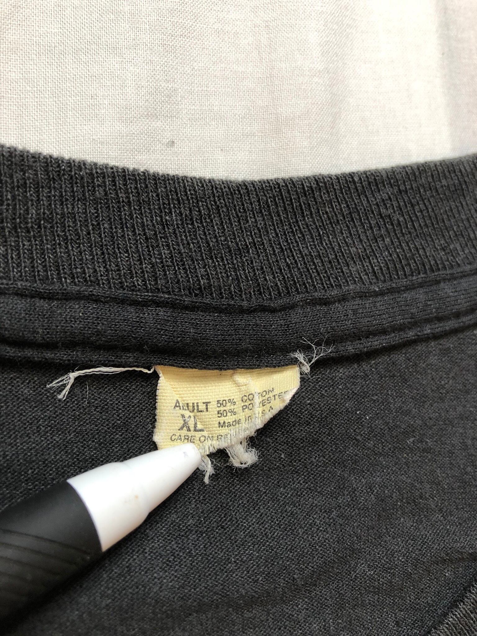 タグは破れかかっていますが、「50% COTTON 50% POLYESTER」の評価が確認でき、袖・裾ともにシングルステッチであることから、1980年代〜1990年代初頭のものであると思われます。