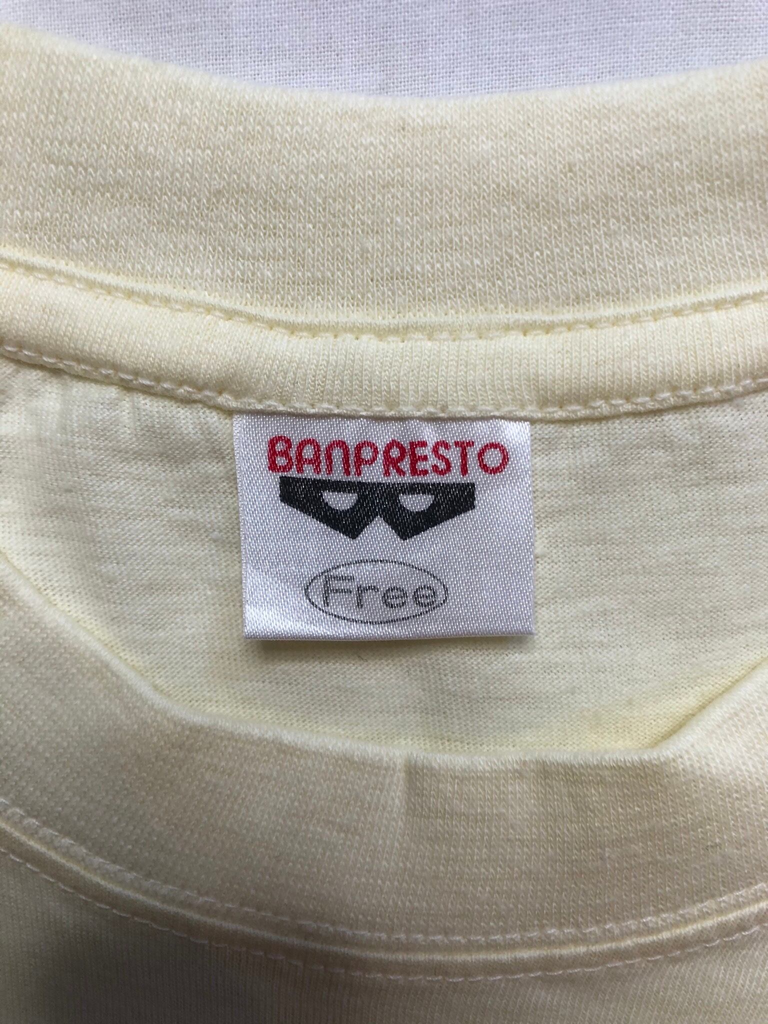 襟タグはBANPREST、袖・裾ともにシングルステッチ、付属の紙タグには1996年のコピーライトが入ります。