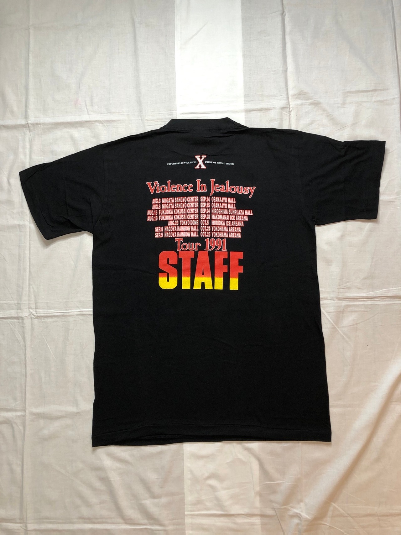 更にこちらの商品は販売されたものではなく、1991年のツアーにおけるスタッフ用Tシャツで、希少な逸品になります。