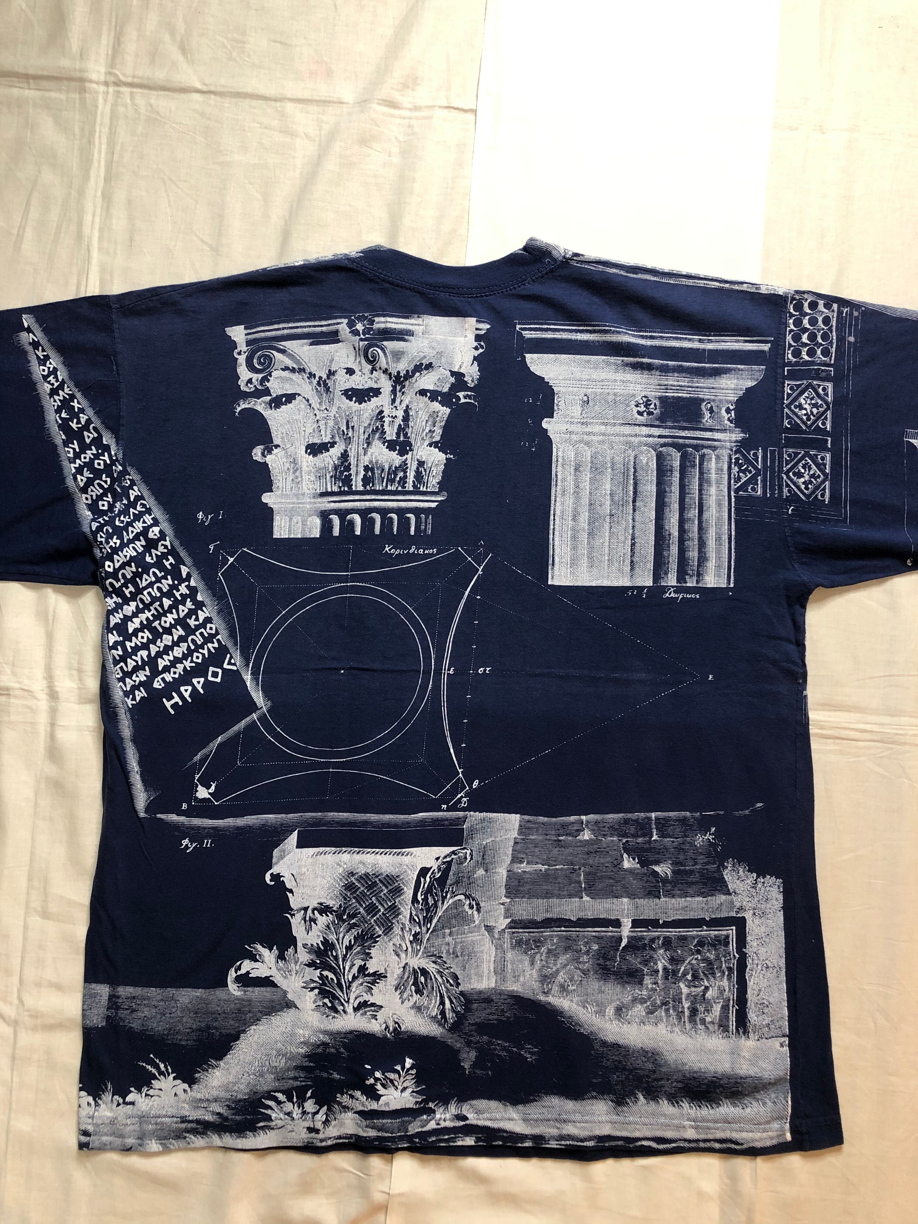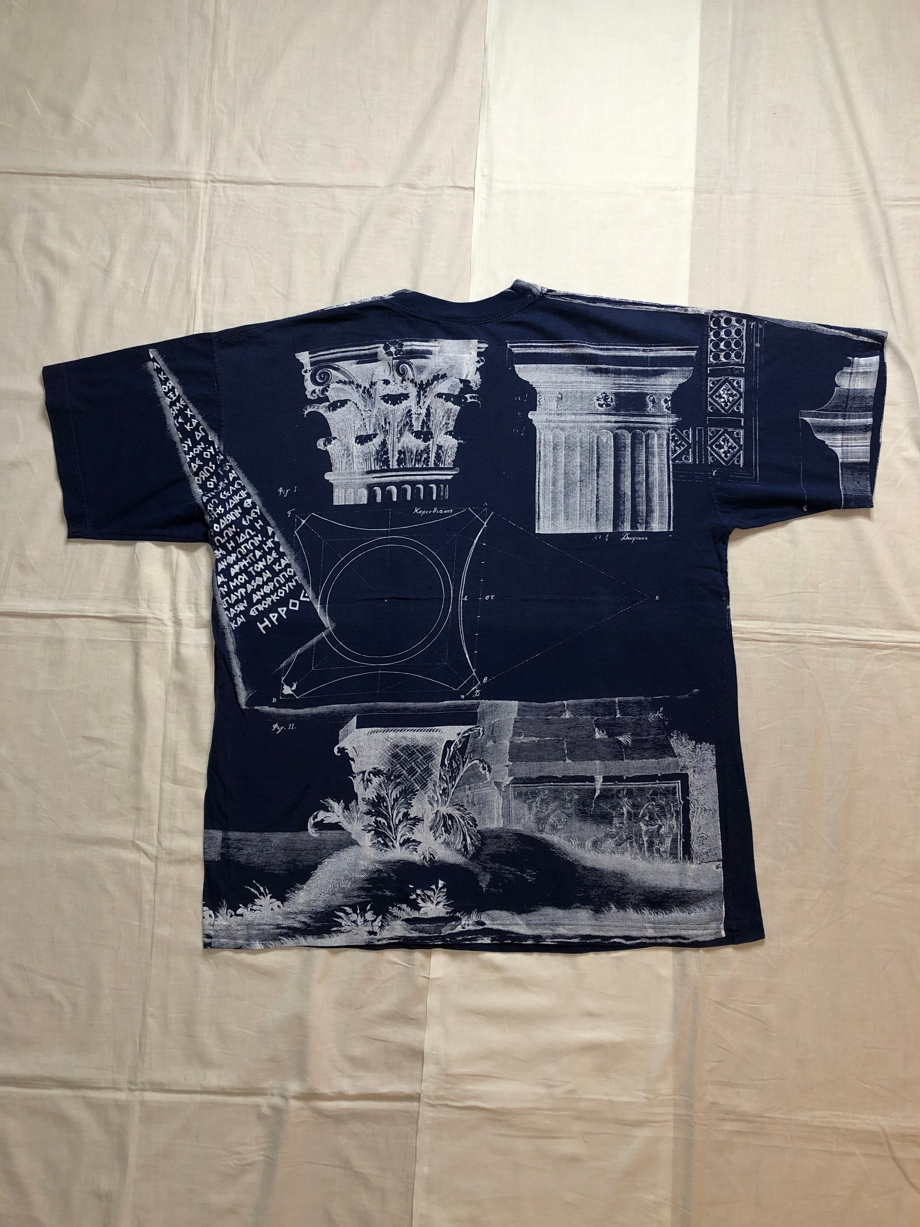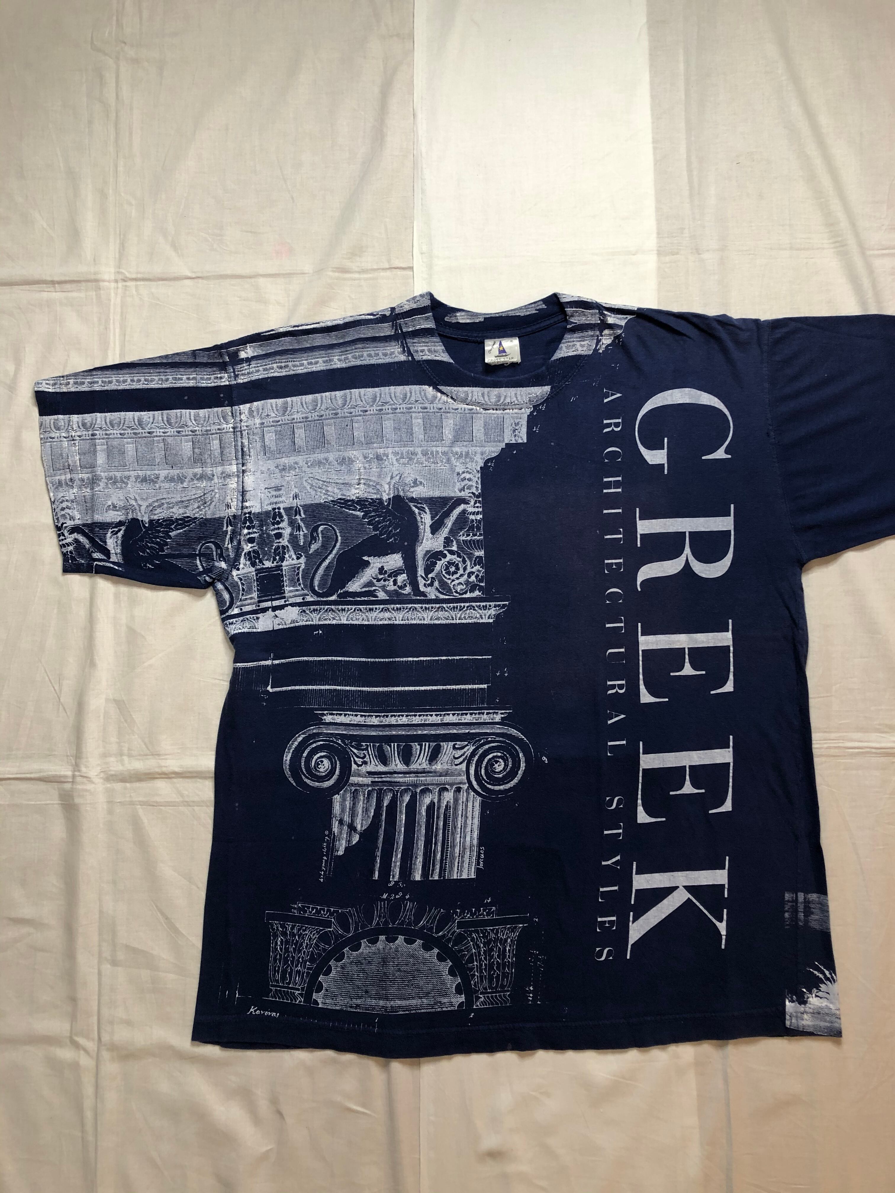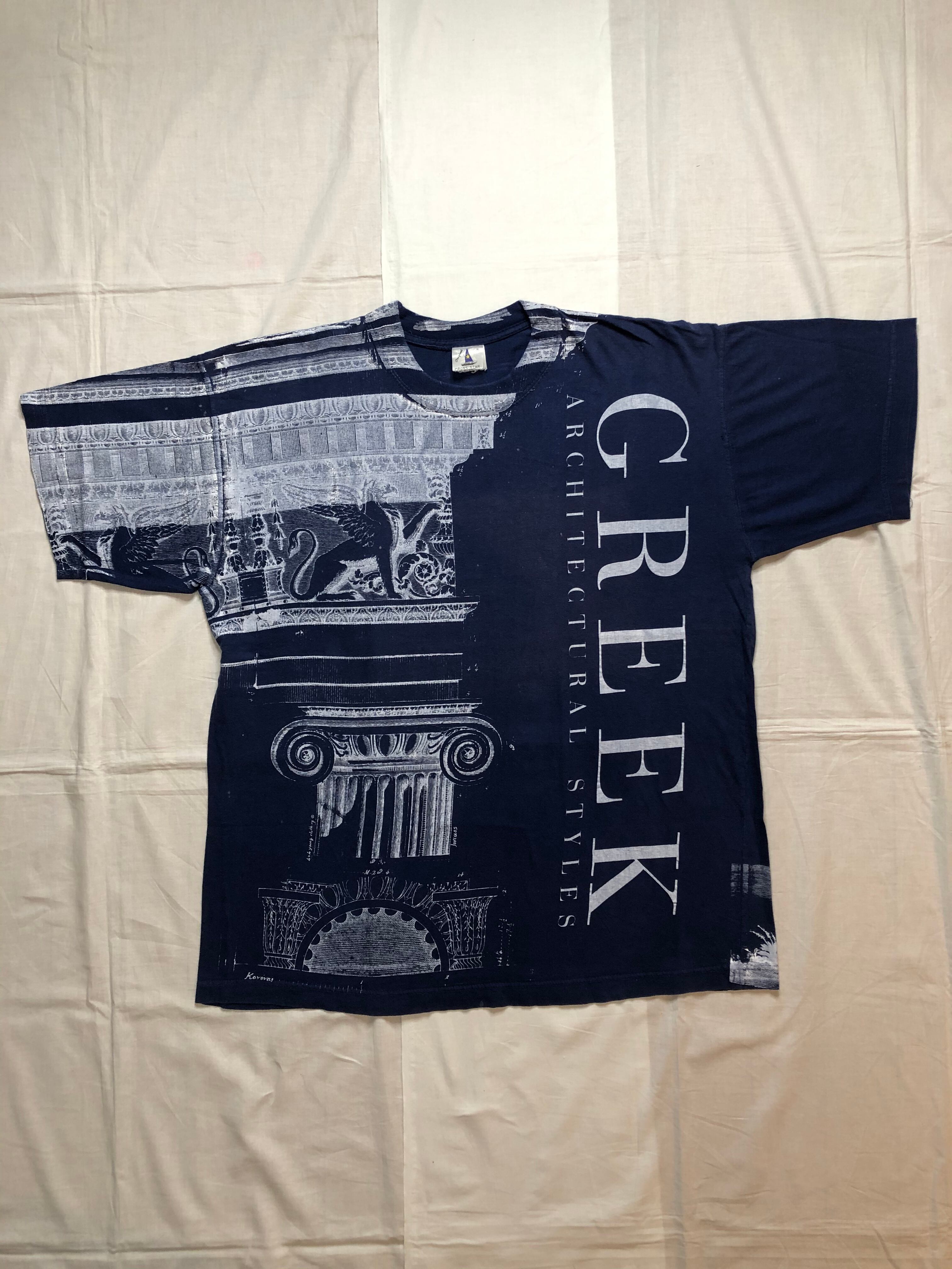 ギリシャの遺跡や柱などが総柄でプリントされたTシャツです。