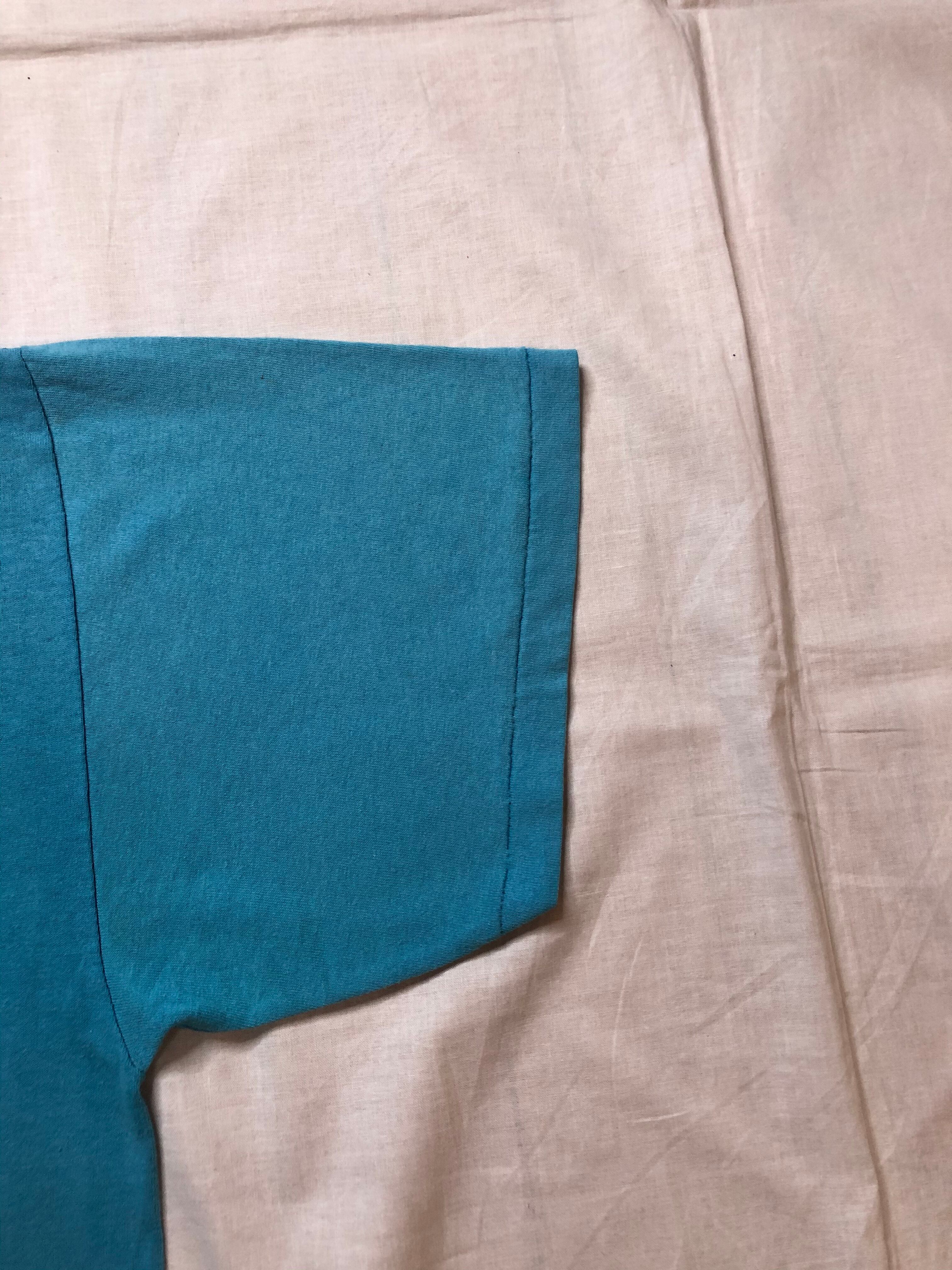大きめサイズの90’sもの、袖・裾シングルのポリ混生地でいかがでしょうか。