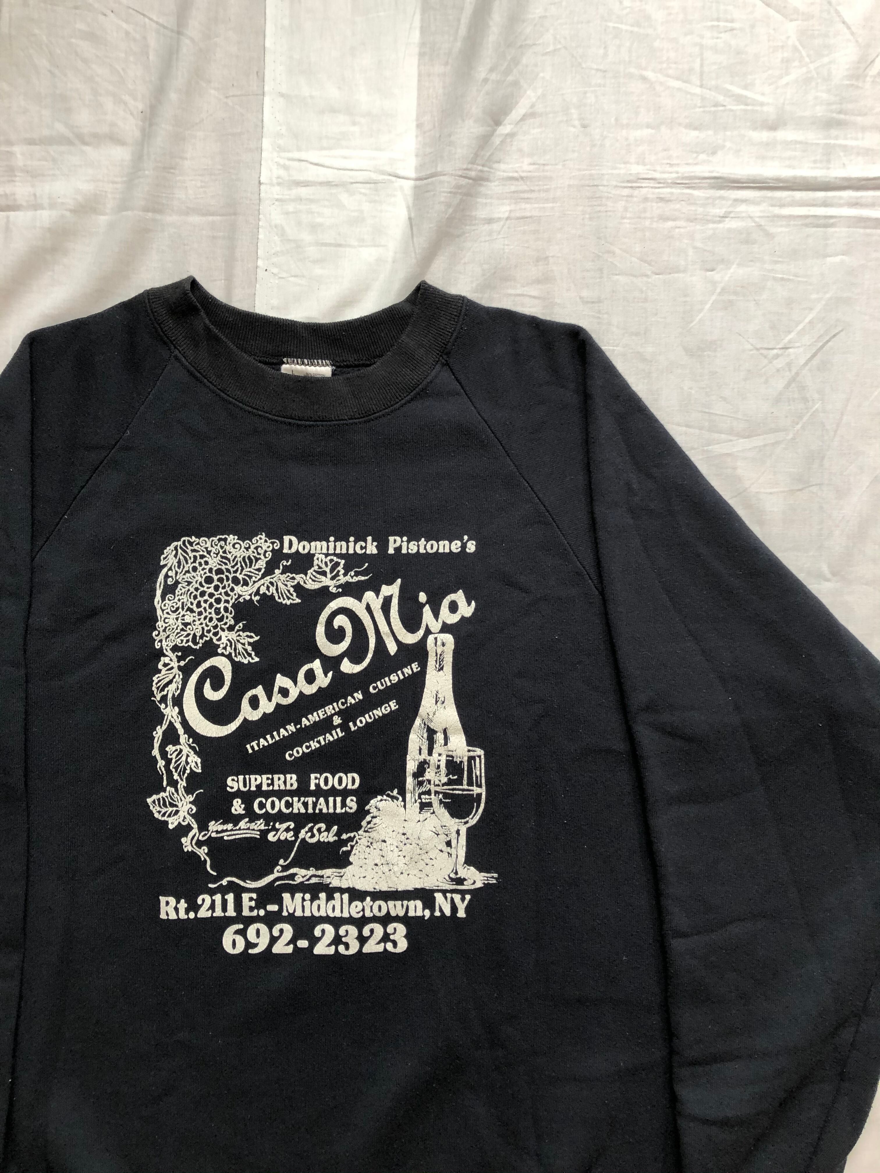 FRUIT OF THE LOOMのタグで、ニューヨークにあるワインラウンジのプリントになっていて、80年代らしい味のあるプリントになっています。