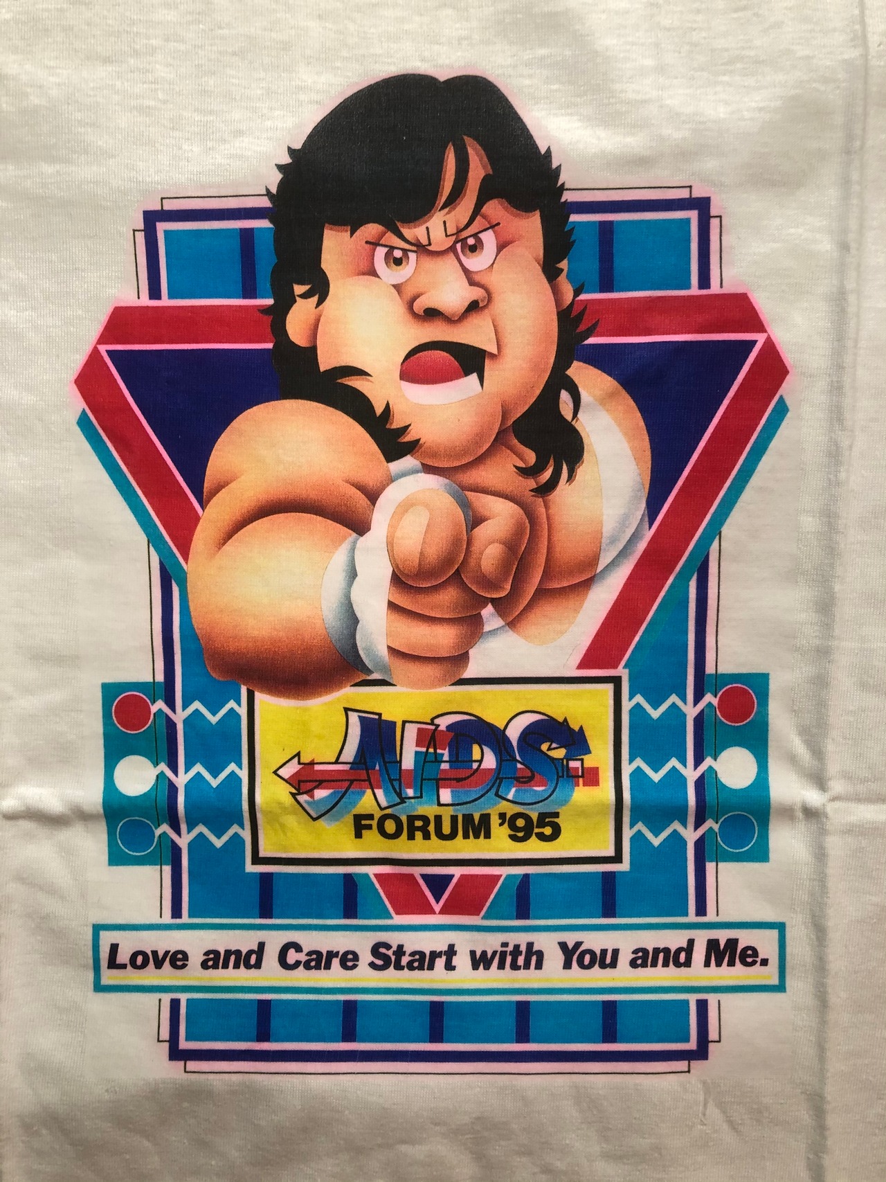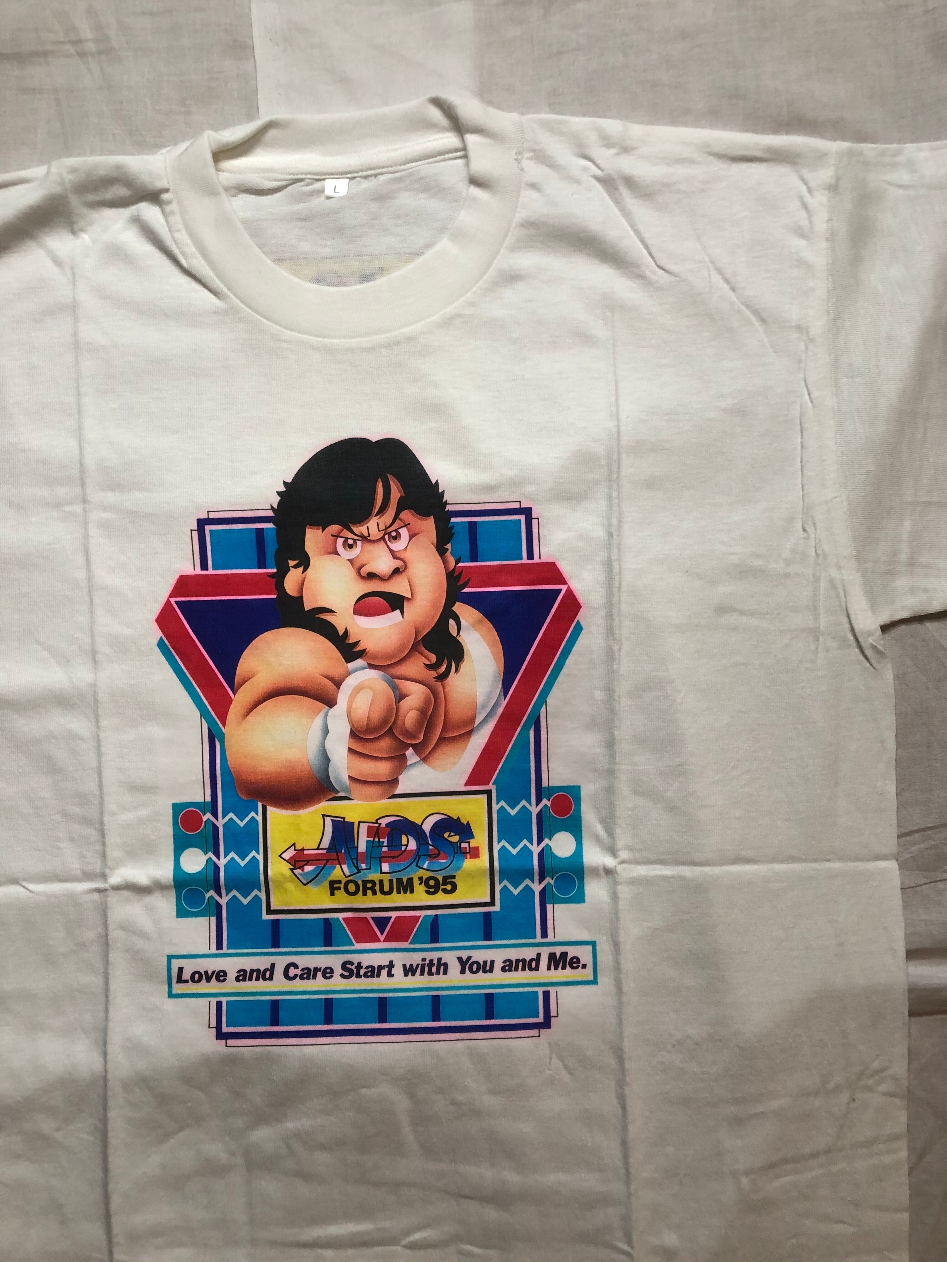 これは1995年に開かれたフォーラムの際に製作されたものと思われ、そのマスコット的な人物として大仁田厚がプリントされたものになります。