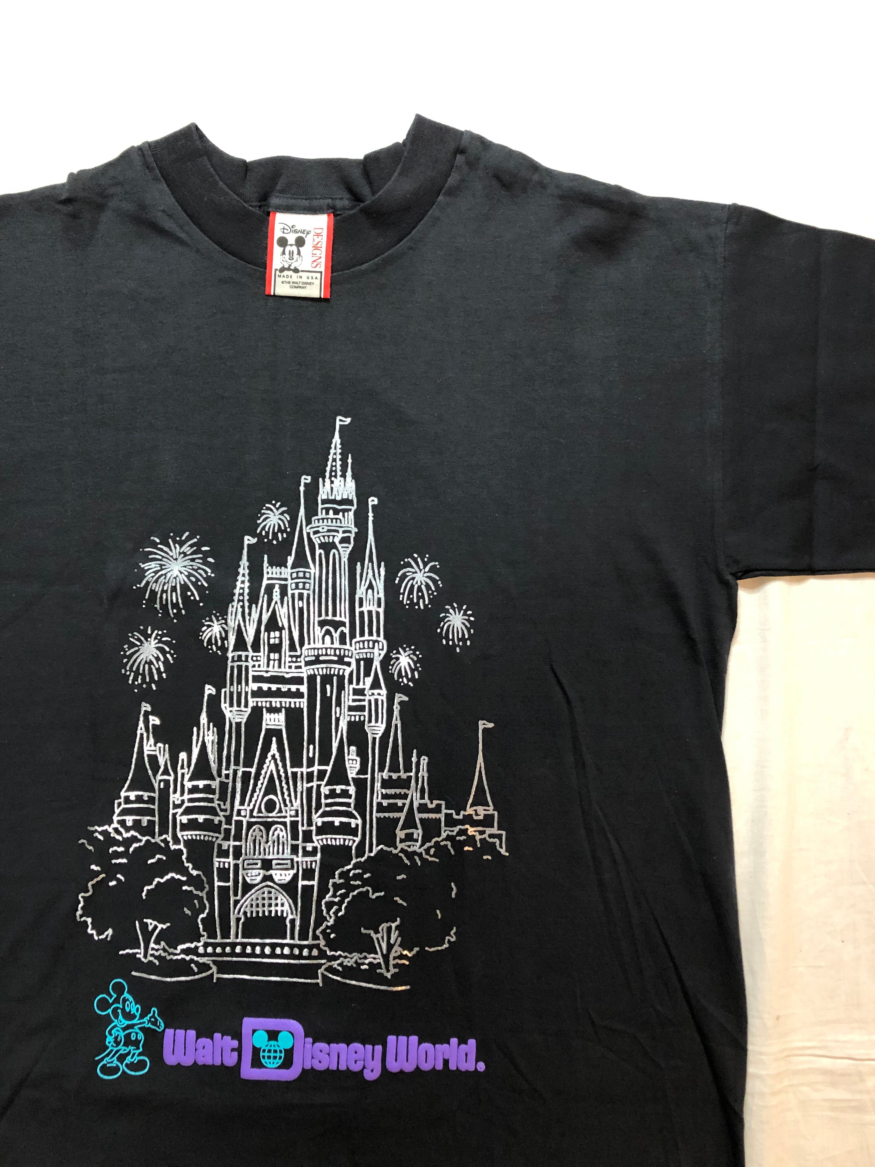 こちらはUSA製の当時の正規品で、黒のボディにシンデレラ城の発泡プリントが映える素晴らしいプリントとなっています。