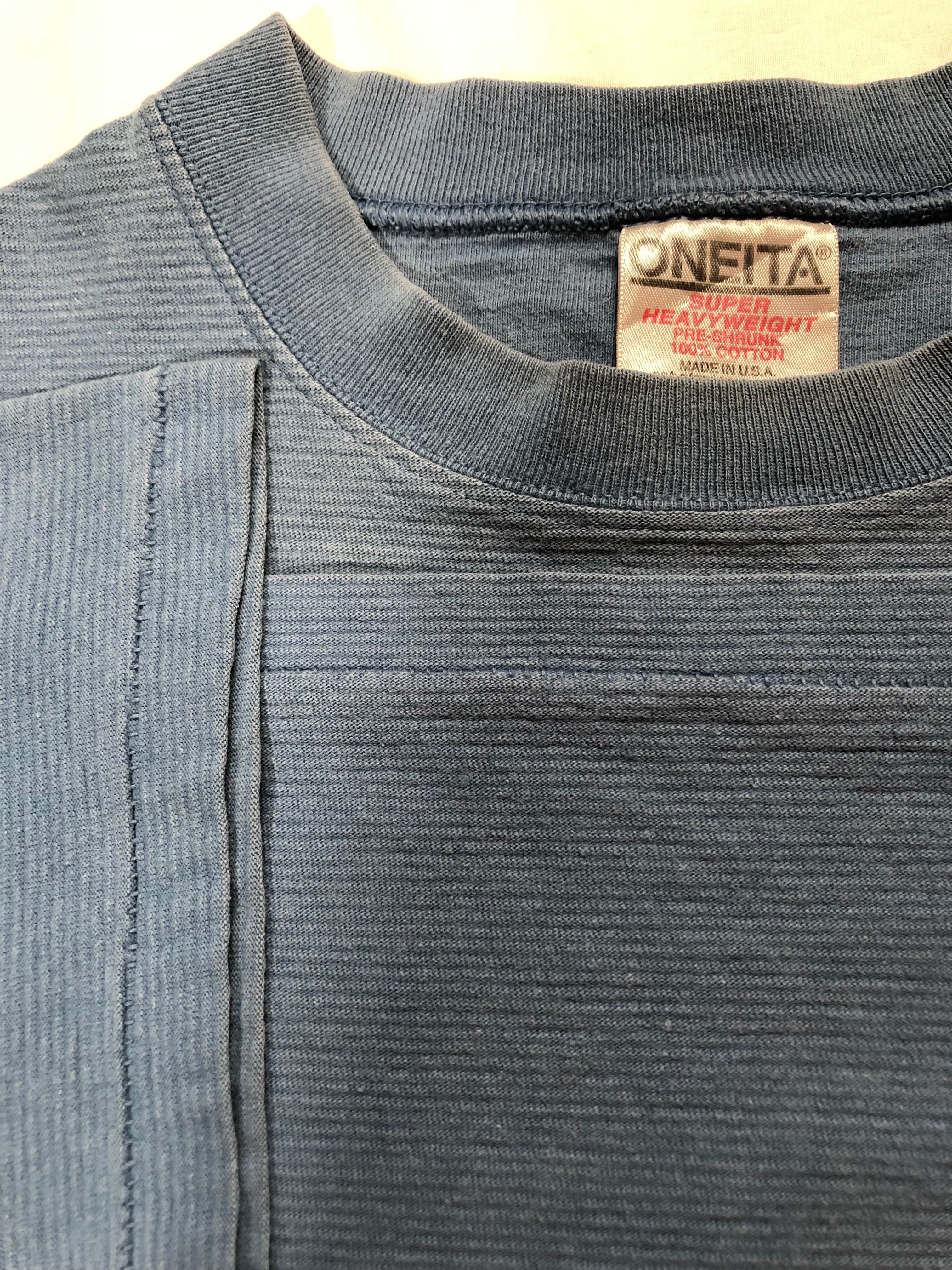 ボディは90’sのONEITAのSUPER HEAVYWEIGHTという厚いしっかりとした生地で、ピケ生地の様に凹凸のある生地感が特徴です。