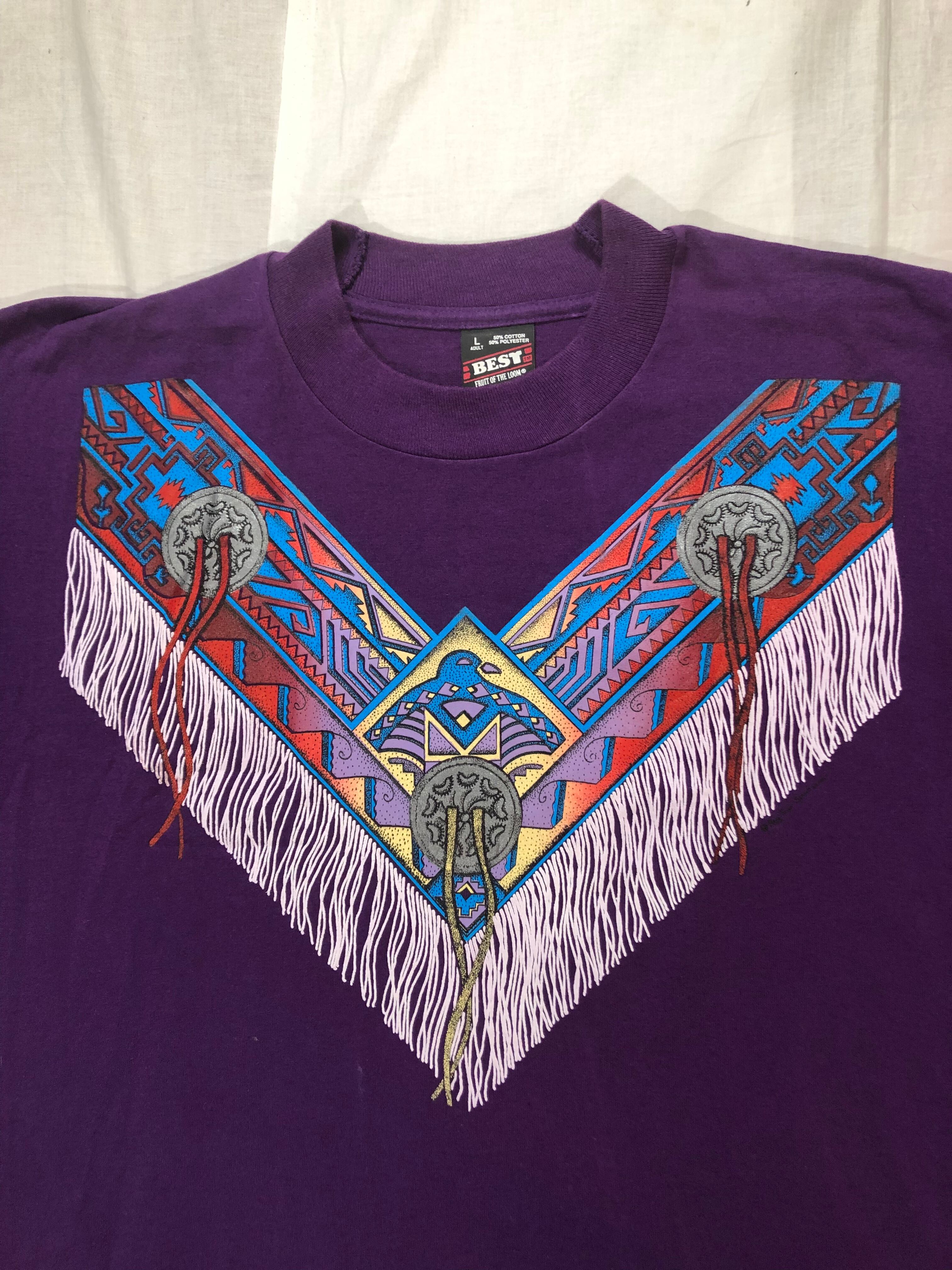 1980-90年代にかけてはこの様な民族系のTシャツが多く製作されましたが、その中でも美しいプリントになっているかと思います。